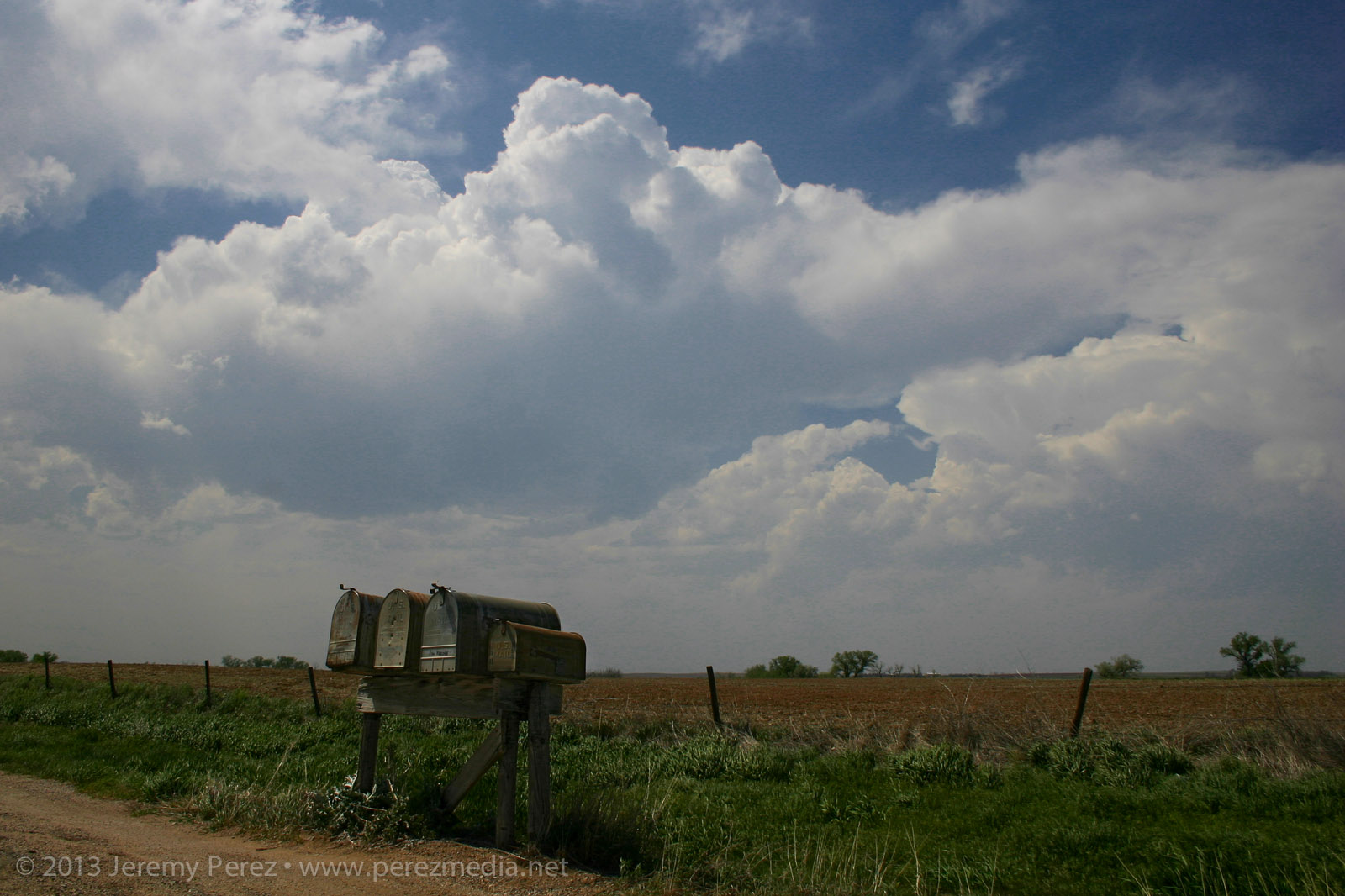 The past couple days, I had been working on being conscious of foreground elements to complement the sky in any photographs. It’s so easy to see this awesome sky and shoot with a bland, flat foreground that you don’t notice how boring it is until later when you’re processing images. So: mailboxes, wind turbines, farmsteads, any given stand of trees...I took them where I could get them. (Doesn’t mean my heat-of-the-moment tornado & funnel photos always benefited from decent composition...see down the page.)