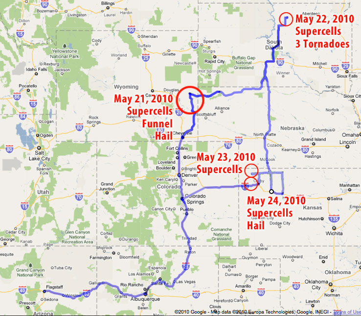 As the week progressed, the GFS and eventually NAM forecast models continued to confirm this set-up, while timing and locations fluctuated from day to day. I got the o.k. to take Friday and Monday as vacation days, and planned to head for the Colorado/Wyoming/Nebraska borders on Friday, South Dakota/Nebraska on Saturday, and somewhere along the dryline from Nebraska to Oklahoma on Sunday. To get the best chance for current data on the road, I activated wireless broadband access with Verizon and got my forecast, satellite and radar links set up on the MacBook.