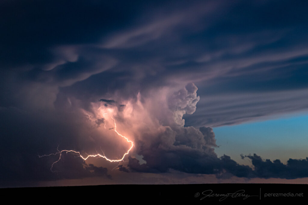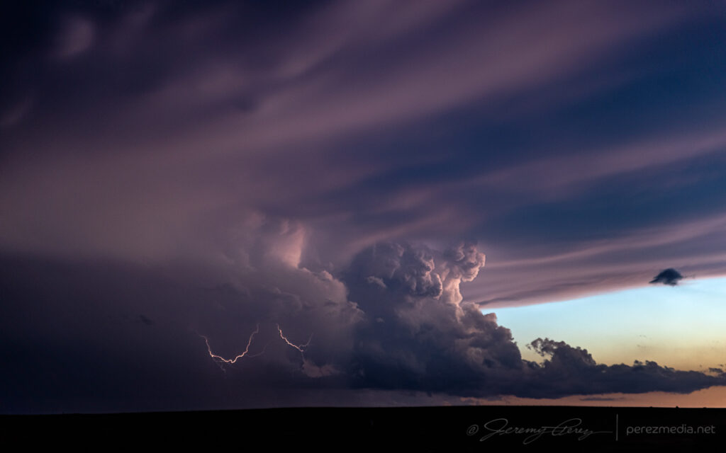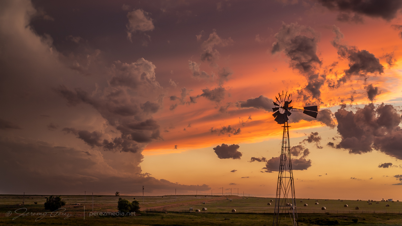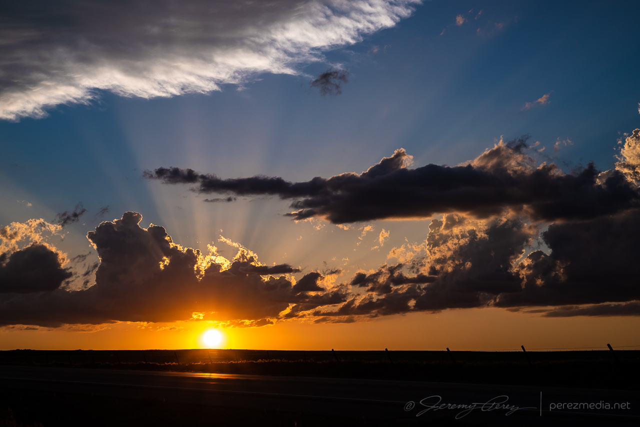 Once it was clear nothing was going to happen there, I raced south toward convection in the north Texas Panhandle for a shot at a sunset photo op. Hustling to the vicinity of Slapout, Oklahoma, and wandering the grid wound served up a gorgeous end to a low key down day.
