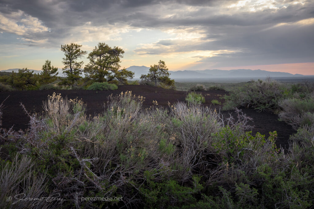 After chasing a few storms in eastern Oregon the day before, we made the 8+ hour drive south around the Sawtooth Mountains to get to try and meet storms swinging out of the Bitterroot Range. After some roadside and truck stop napping, we took a couple quick breaks in Idaho at Craters of the Moon National Park and Numbers Hill in Arco.