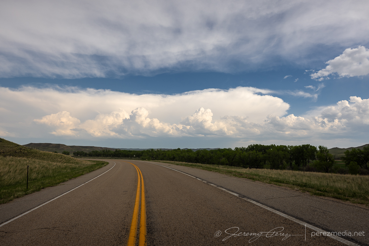 May 23rd was a travel day, getting from central Montana down into New Mexico for the next batch of setups. On the way down, we encountered a few storms. One rotating cell had its structure shrouded by rain as we approached from the north on I-25. It managed to dissipate just as we were about to flank it along Rt. 192. But other storms were popping up in the area and southward along our route.