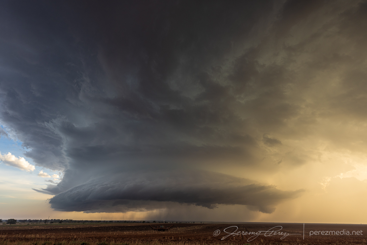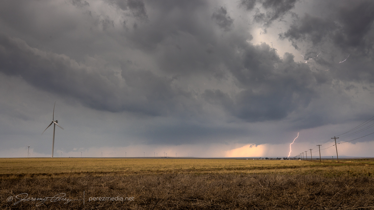 Further southeast took us into oil field, with flares burning as the storm morphed and spun against the sunset. After sundown, structure started to fall apart and we disengaged.