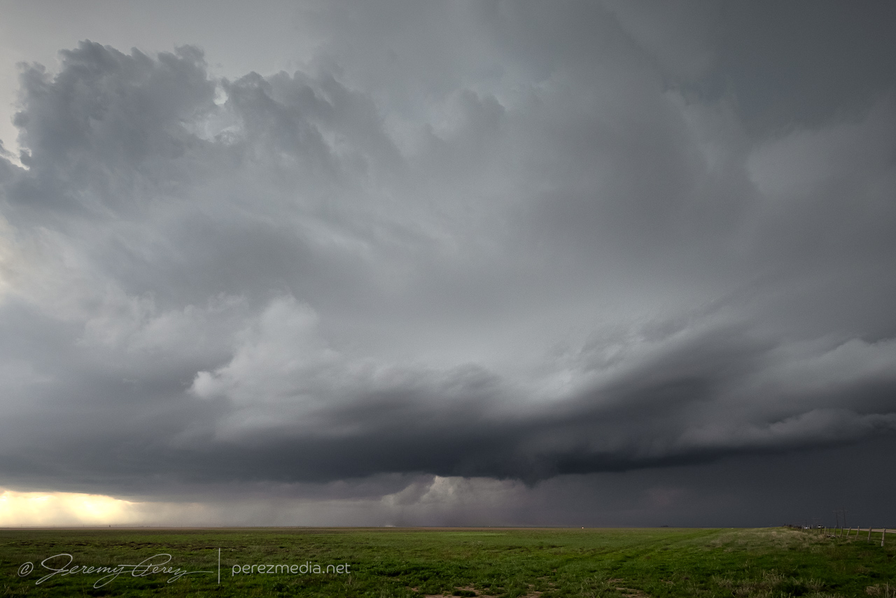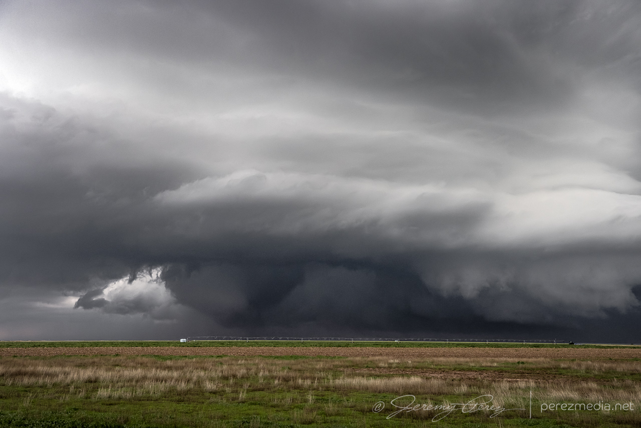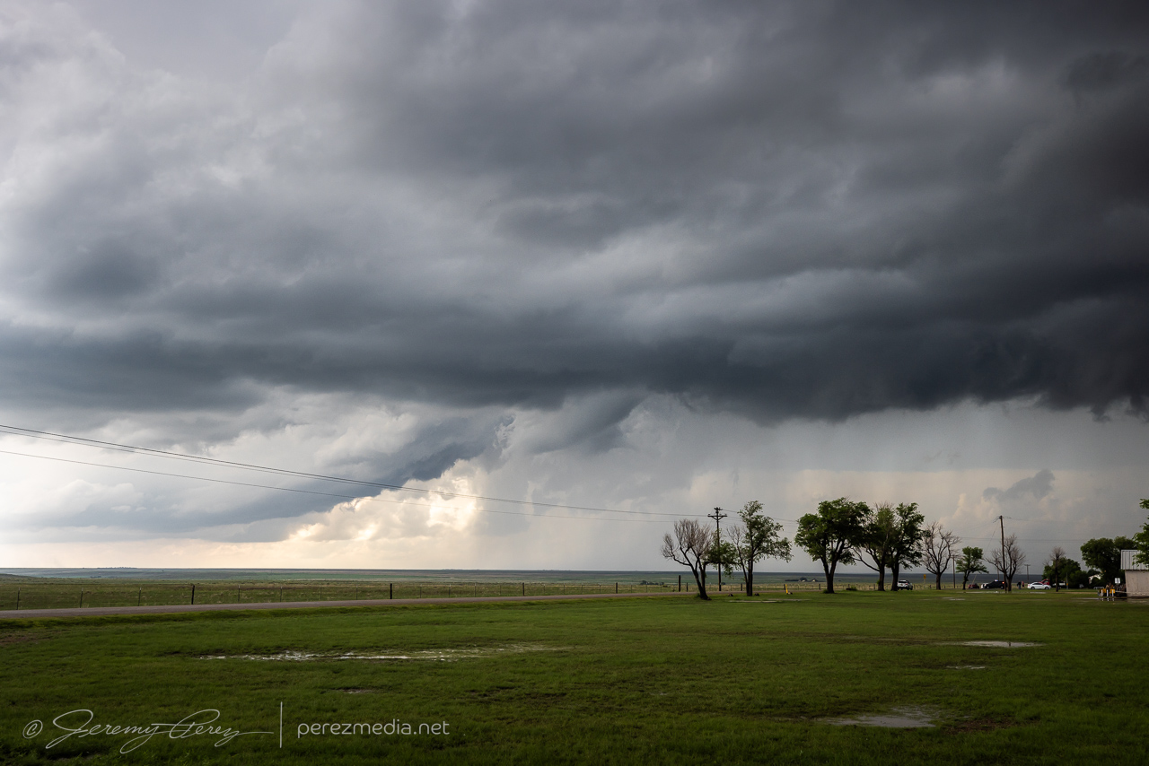 At this point, that other anticipated line of storms was now moving in from the north and I moved over to Hwy 287 south of Stratford so we could hustle south and stay ahead of it. As it rushed into our storm, it gusted out and everything started cascading southward. We cruised down Hwy 287 for a while, getting photos of the big gust front before calling the chase on a spectacular day.