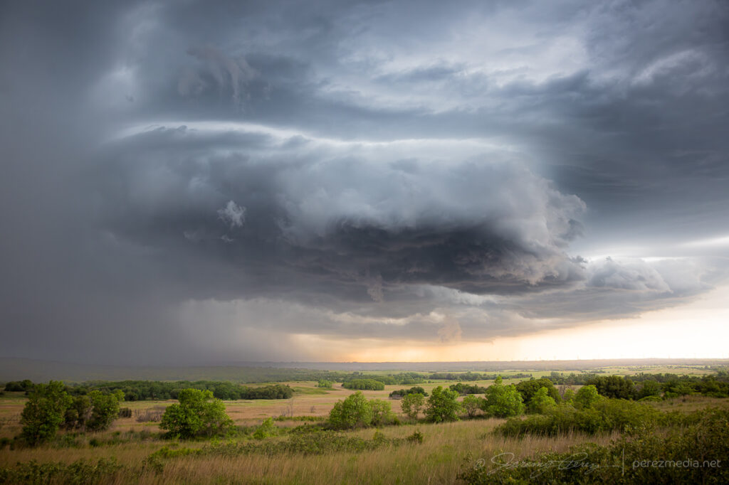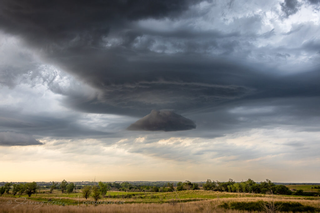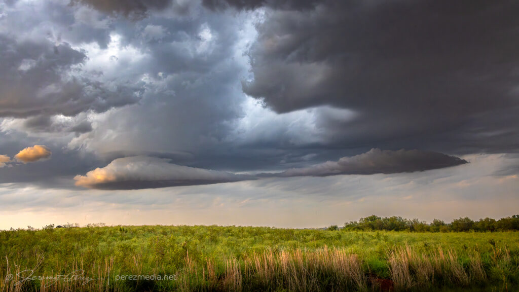 Although cells were individually migrating southward, a cluster out of the Panhandle was pushing eastward strongly enough to load the north side of all the convection with some excellent cloudscapes. So I surfed those for the rest of the day, starting at Higgins, Texas and moving up near Woodward, Oklahoma later.