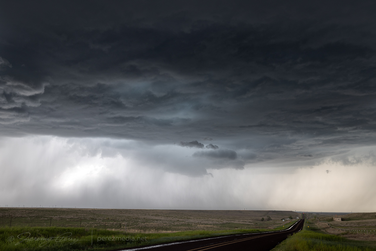After hustling north from Fort Stockton that morning, I caught up with a cell north of Gruver. It danced on the threshold of multicell and marginal supercell as it slowly drifted northeast.