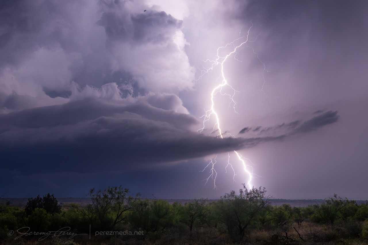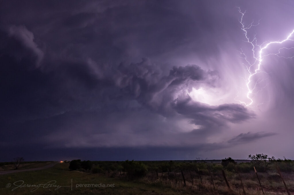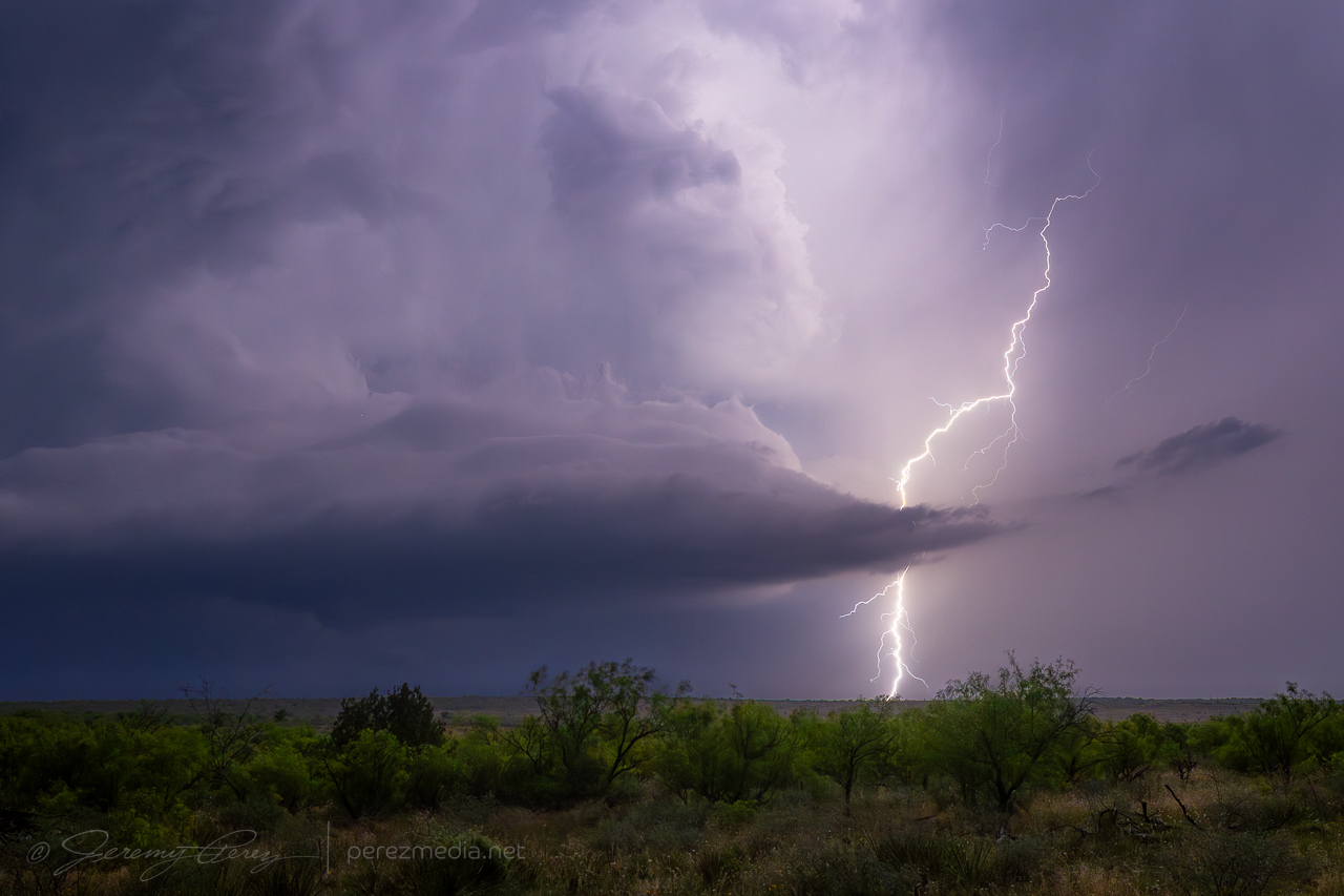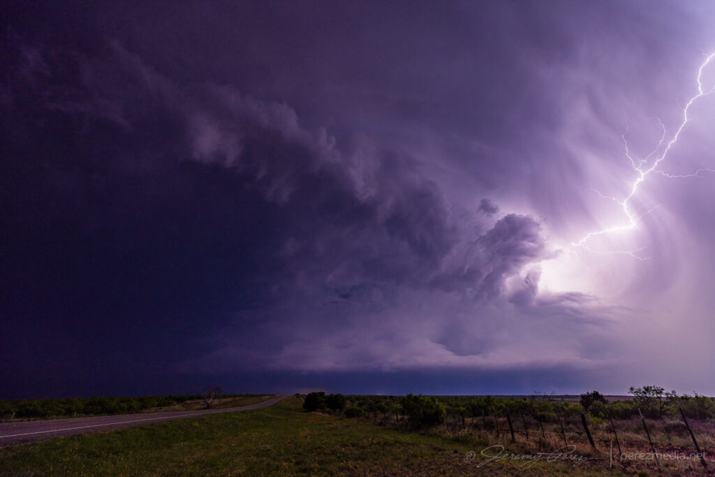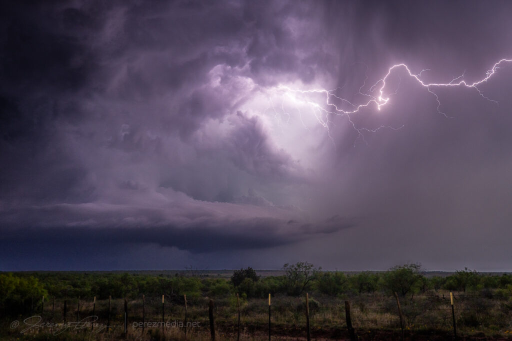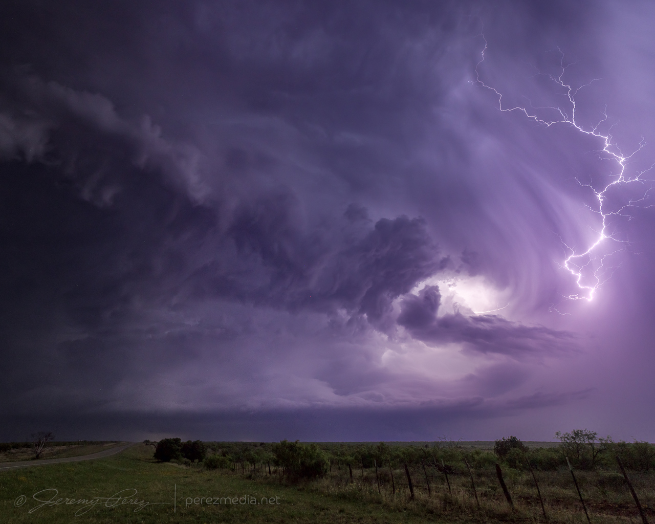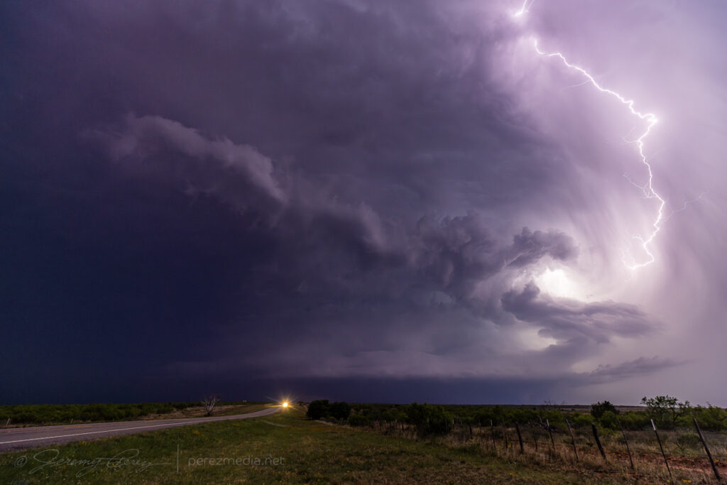 A much heftier supercell was brewing to the south, so I headed that way for an evening light show east of Post. As I got there, the storm went elevated, shrunk down and gave up a few good strikes before going dark.
