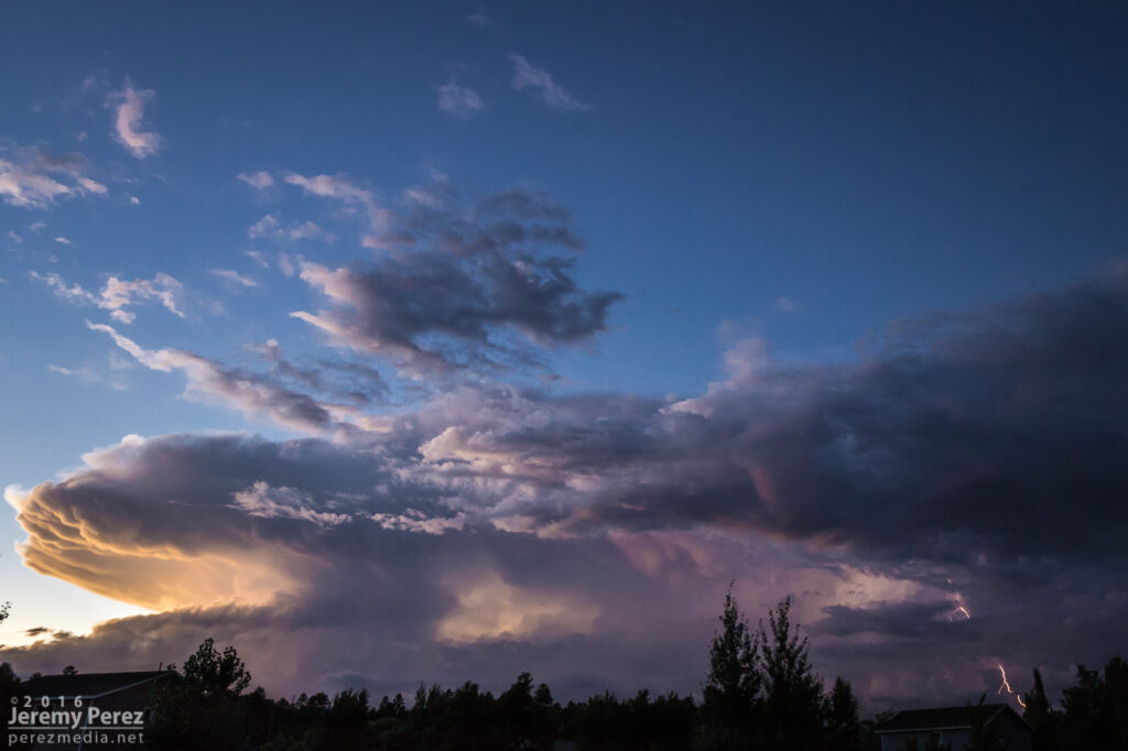 So we wound up with four landspouts for the chase. I spotted a possible fifth one on the dashcam later, but haven’t pinned it down to an official report yet. The great thing about a chase that ends before sunset is winding down with shots of the shelves, landscapes and towns in the post storm environment as the sun goes down.