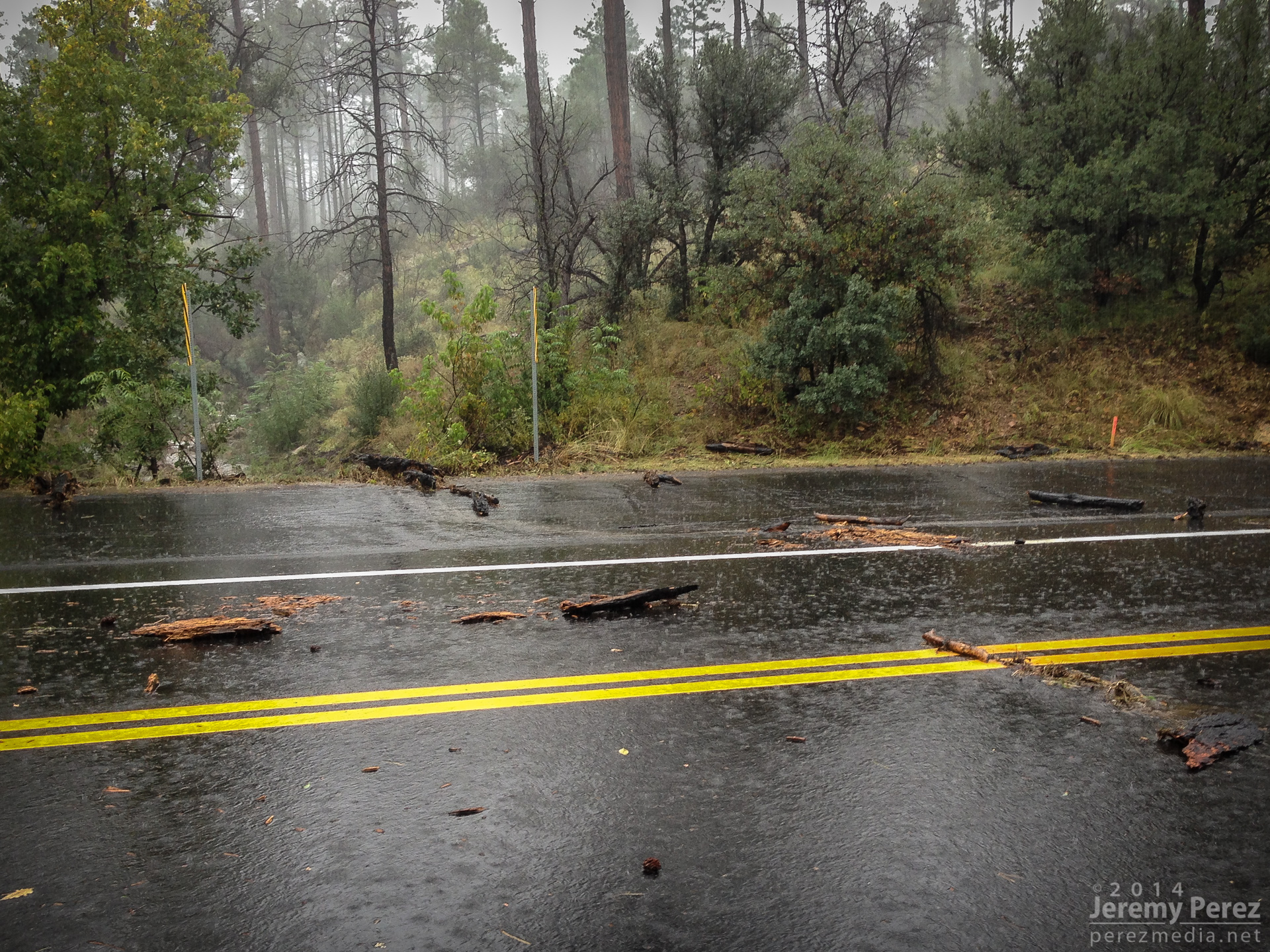 Flash flood debris on Highway 89 just south of Prescott (Had already pulled the huge log out of the road at this point). 2:56 PM / 2156Z
