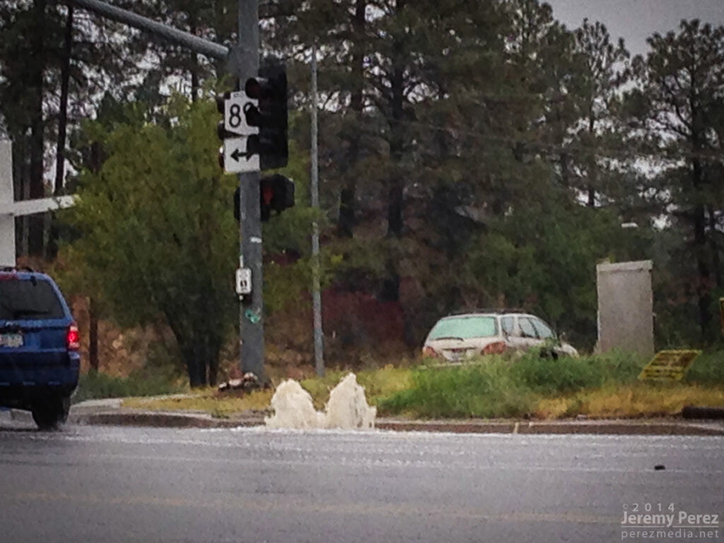 As I made my way into Prescott, DPS was roaming around pulling debris out of the streets. Further in, I passed a storm drain that was fountaining water, and the town was a waterlogged, debris strewn mess. The worst had passed though, and there were no ‘turn around don’t drown’ scenarios to deal with.