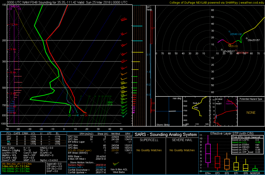 - Upper level winds around 40-50 kts with 15-25kts near terrain feature – sufficient wind speed to convert horizontal terrain interaction into sufficient vertical motion. The San Francisco Peaks reach to about the 650mb level, so I’d watch for winds beginning to pick up around that level.