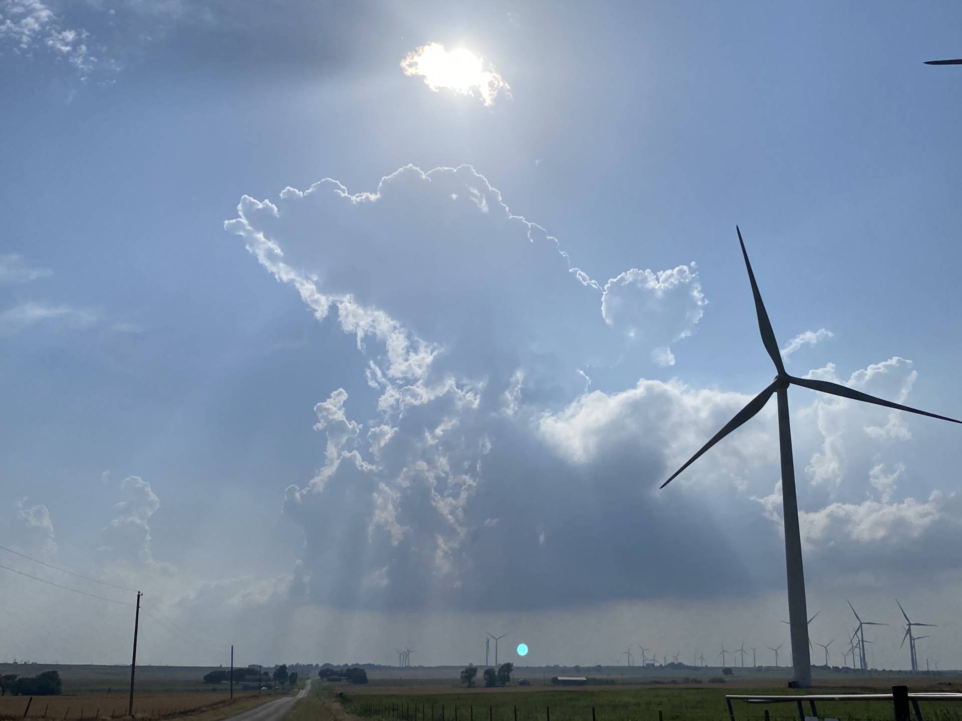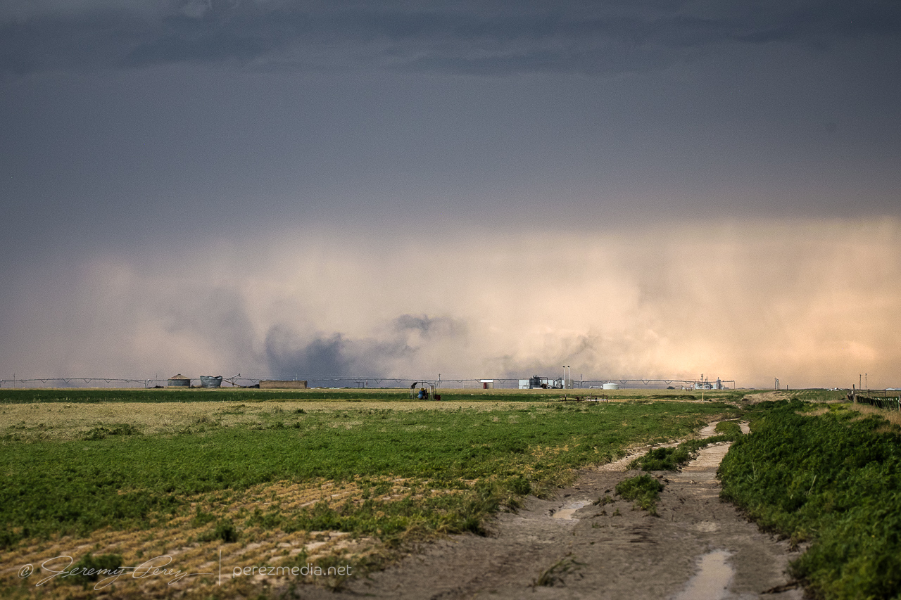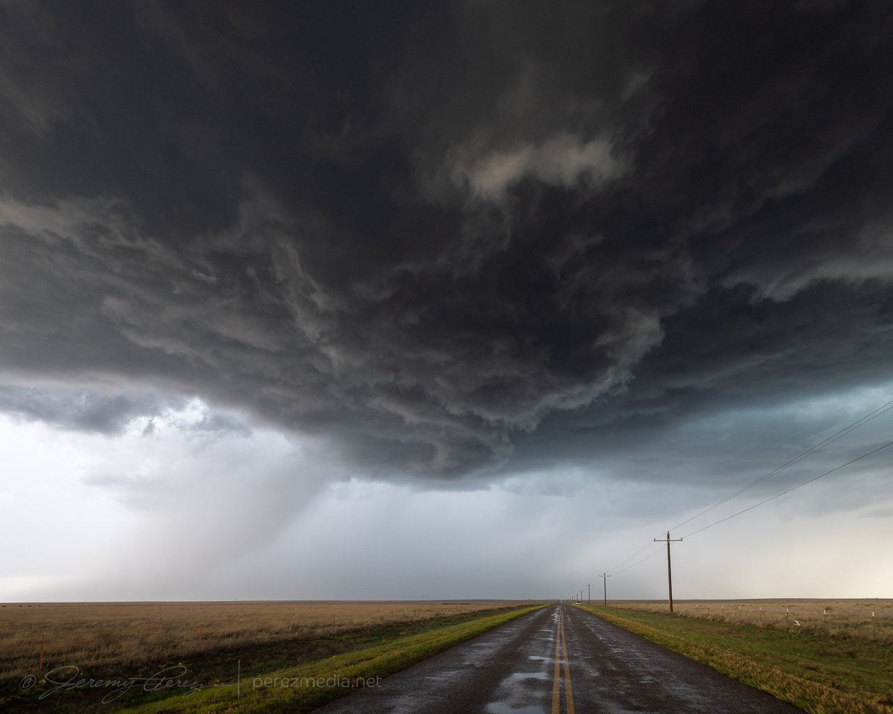 After hustling north from Fort Stockton that morning, I caught up with a cell north of Gruver. It danced on the threshold of multicell and marginal supercell as it slowly drifted northeast.