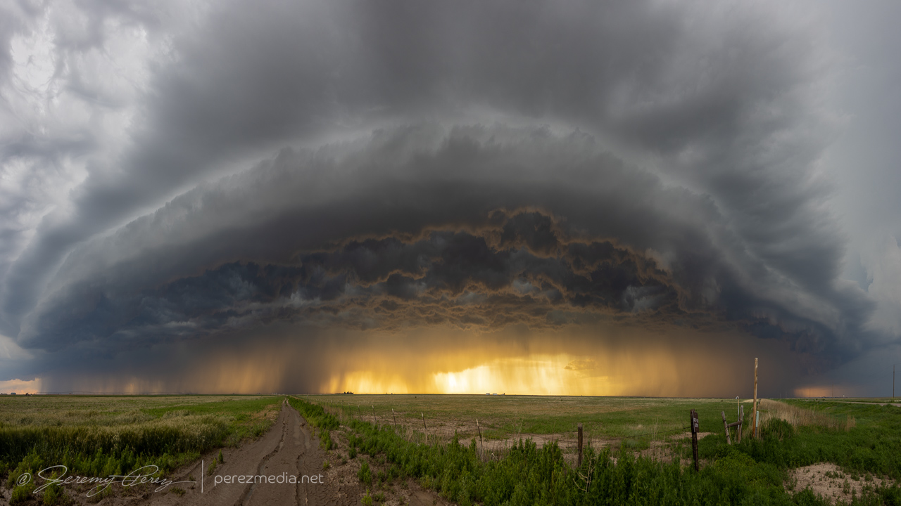 Storms building northwest of Elkhart, Kansas. 0055ZDust kicking up along a developing gust front. 0053Z & 0104ZPart of the line strengthening to our north. 0059ZShelf cloud bulking up as outflows merge. 0117ZPanorama of incoming gust front. 0123ZSunset lighting up the whale’s mouth. 0203Z