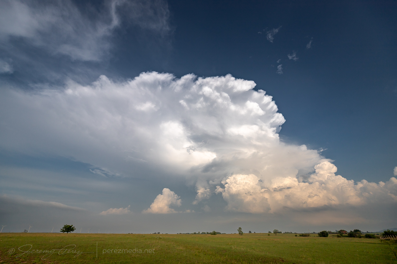 Although cells were individually migrating southward, a cluster out of the Panhandle was pushing eastward strongly enough to load the north side of all the convection with some excellent cloudscapes. So I surfed those for the rest of the day, starting at Higgins, Texas and moving up near Woodward, Oklahoma later.