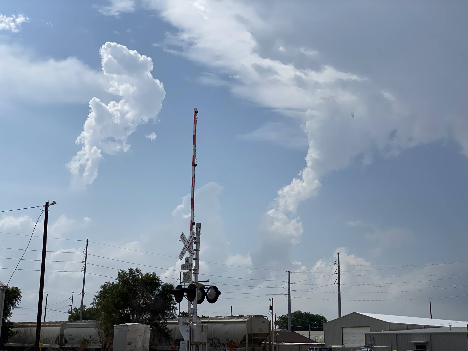 As I approached the Red River, towers were going up, and as I moved into Childress, a really nice updraft and anvil were overshadowing the town.