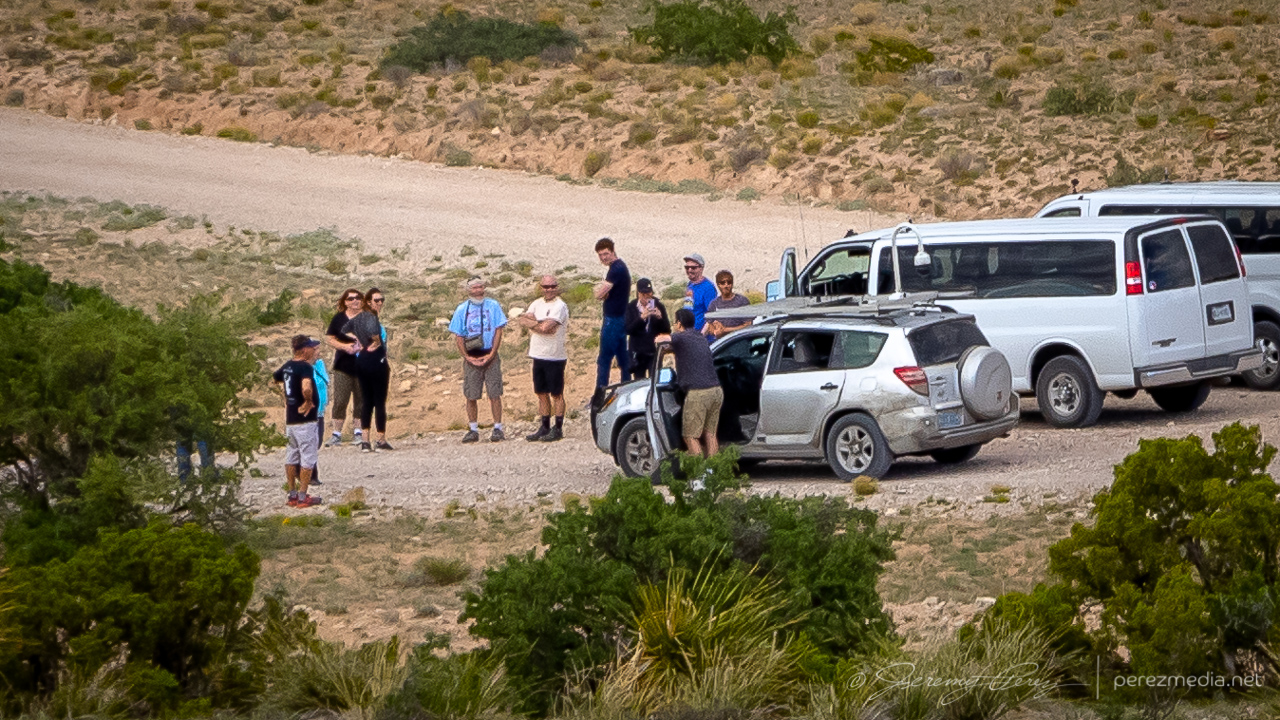Prickly Pear, Ocotillo and Creasote framing convection over the Guadalupe Mountains — 1905ZChecking out a bold outcrop as convection edges closer — 2103Z