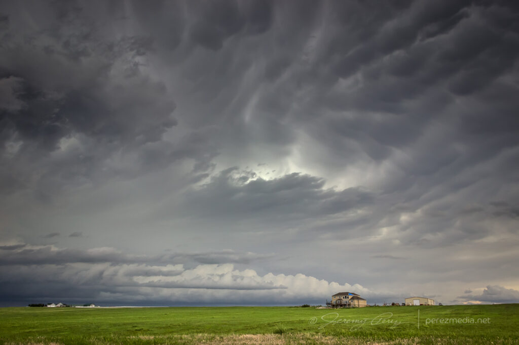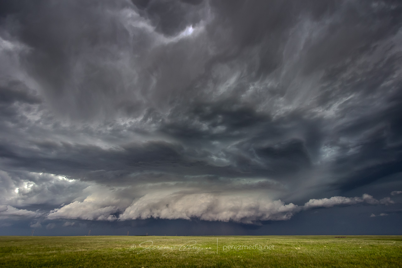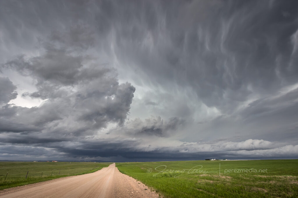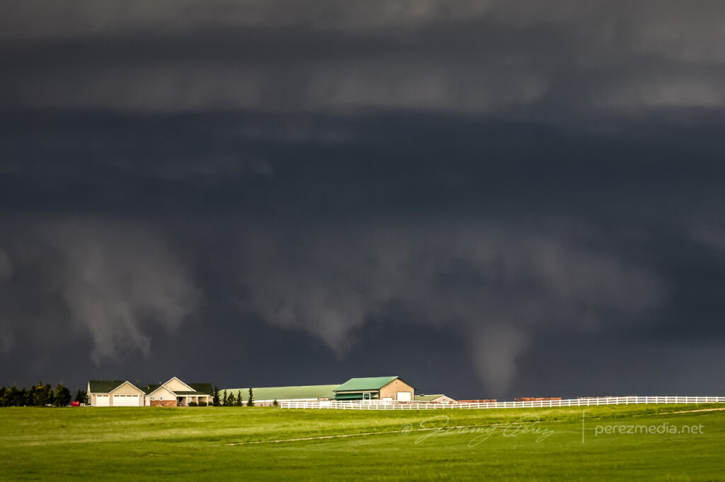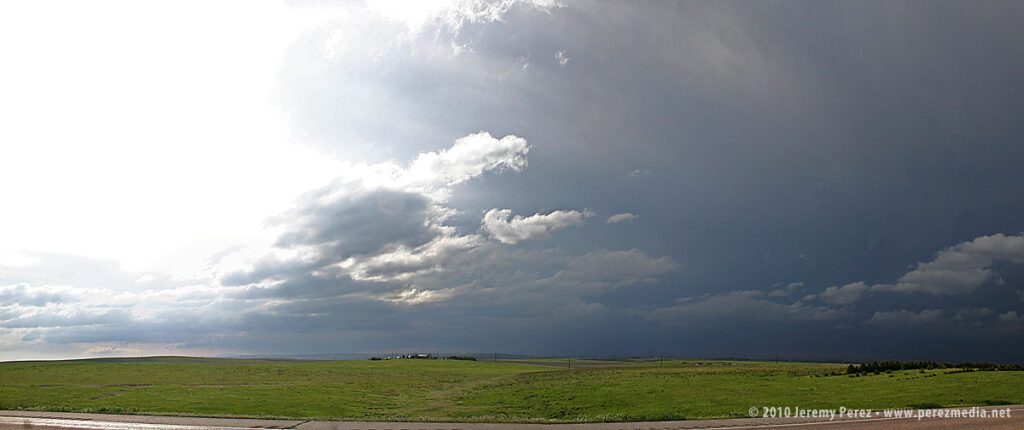 The cell looked great as it moved in and I wanted to be ready to jog back over to I-25 to intercept, so I didn’t drive further in. In retrospect, I should have gone further northwest on Horse Creek to get a closer vantage, but it still worked out reasonably well.