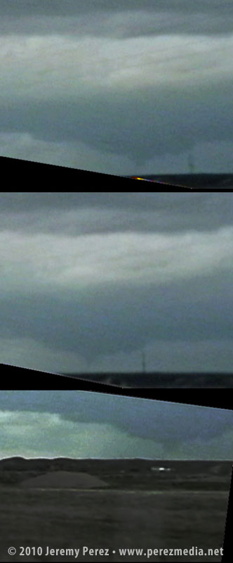 2108Z — Distant wall cloud and tornado beneath overall storm structure2108Z — Low contrast tornado looming behind homestead2109Z2109Z — Tornado and wall cloud behind homestead