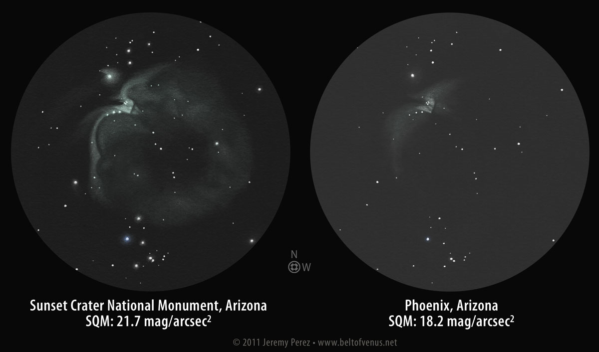 | Featured Technique: | Sketching an object under different sky conditions to display the effect of light pollution on object visibility and overall observation quality. |